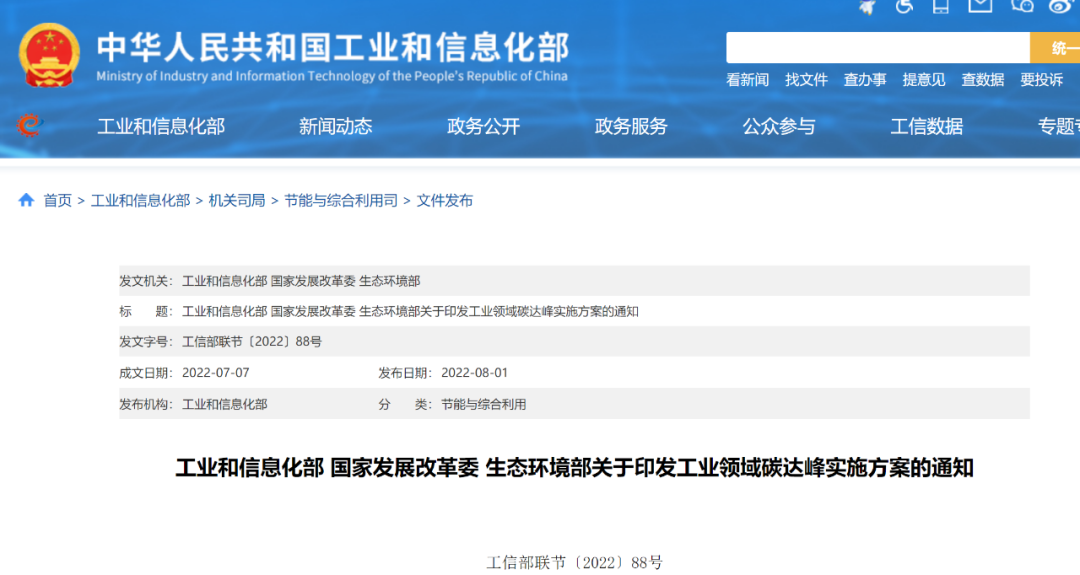 工業(yè)領(lǐng)域碳達(dá)峰實(shí)施方案
